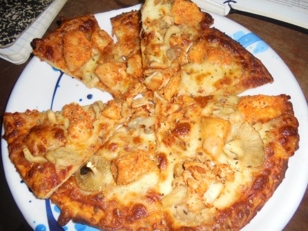 Oh yes, and I also had pizza! It was a spicy chicken pizza with mushrooms. It was my first time eating mushrooms! It was cake. 🙂